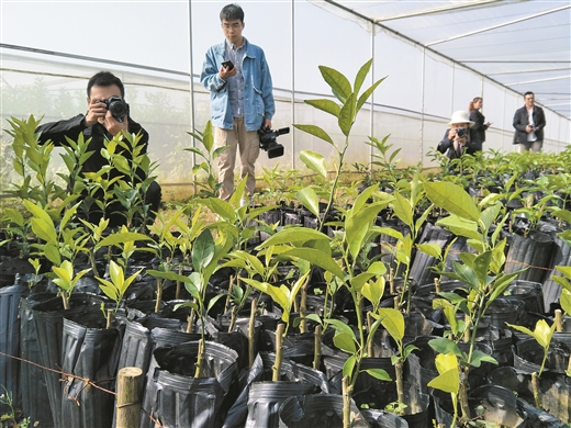 红河红现代特色农业示范园区发展观光农业,推进农旅融合。图为农场里,新培育的柑橘苗木长势喜人。