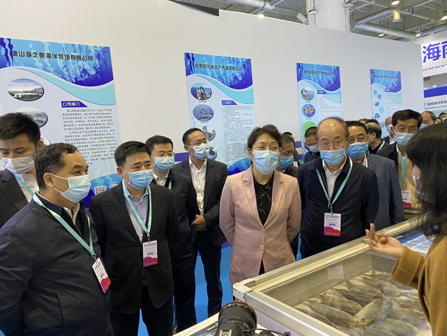 本次博览会,农业农村厅紧紧围绕“生态广西 壮美广西”主题,突出宣传广西海洋牧场建设、规划和海洋渔业发展成果,集中展示了珊瑚、大珠母贝、马氏珠母贝、卵形鲳鲹等特色展品。梁雄向农业农村部渔业渔政管理局副局长韩旭一行做了详细介绍,韩旭对广西海洋渔业发展取得的成果给予了肯定。