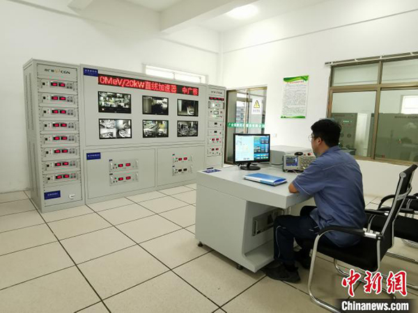 技术人员在项目主控室内操作电子直线加速器运行。中广核供图