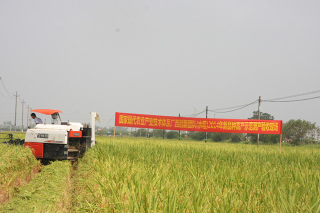 2014年7月22日,广西农业厅、广西农业科学院、百色市农科院及百色市农业局、田阳县农业局等部门在田阳县田州镇龙河村联合开展2014年新品种高产示范测产验收现场会。