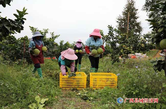 村民们在种植基地采摘“毛南”青柚。蒙宏谯 摄