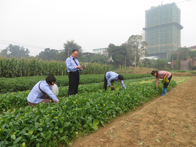 根据自治区农业厅工作要求及百色市农业局的工作部署,近日,右江区农产品质量安全检测站集中力量,深入东笋、拉域等蔬菜生产基地,现场采菜心、豆角、芥菜、韭菜、空心菜等共42个蔬菜样品,所取样品送往百色市检测中心检测。