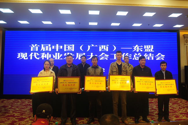 会议为首届中国(广西)—东盟现代种业发展大会上表现杰出的单位颁发奖牌,其中桂林市农业农村局等6个单位获“最佳组织奖”,广西农科院等13个单位颁获“最佳展位奖”。