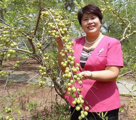 她,就是广西大玉余甘果有限责任公司董事长黄丹红。