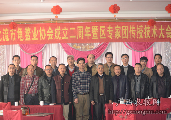 北流市龟鳖业协会相关负责人与区专家团合影,共同探讨广西龟鳖行业的长远发展
