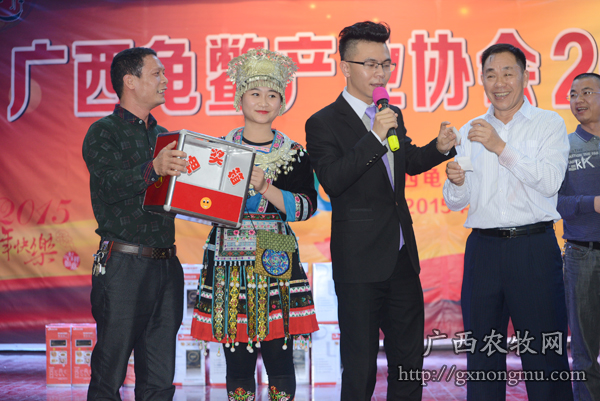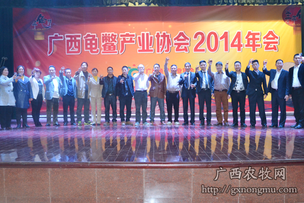 1月5日,广西龟鳖产业协会在南宁银林山庄召开第一届三次理事会和会员大会。中国渔业协会龟鳖产业分会常务副会长、秘书长田彦强,广西水产技术推广总站书记张秋明,广西龟鳖产业协会会长尹炳坤,广东省龟鳖养殖业行业协会会长陈小石,海南省龟鳖业协会会长陈如江以及广西各地龟鳖协会会长等近1000人参加了会议。