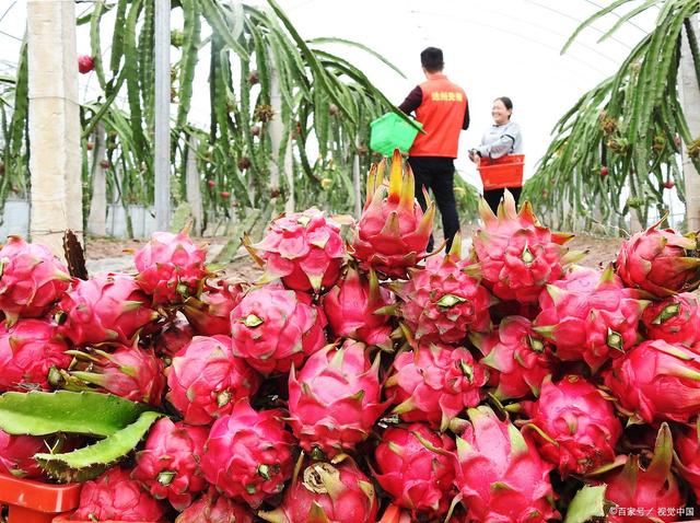 1月6日,在广西一农业有限公司包装厂车间,数十名工人正在忙碌地挑拣、贴标、装箱。仓库里,海关关员则认真检疫即将出口的火龙果。火龙果重800斤,货值27969元,经南宁海关隶属邕州海关检疫合格后启运出口荷兰。这是南宁辖区首批出口的火龙果,也是首次以“广西火龙果”的身份走出国门。