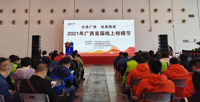 1月8日,由自治区商务厅指导,广西柑橘类种植行业协会、广西商贸服务业发展促进会主办的2021年广西首届线上柑橘节在南宁国际会展中心举行。