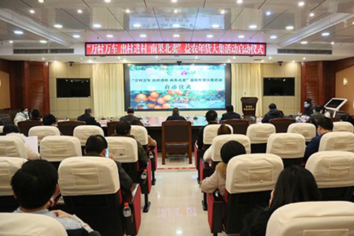 为贯彻落实自治区领导促进我区沙糖桔、沃柑等应季农产品销售工作的批示要求,充分发挥益农信息社体系作用,助力冬春季农产品销售,1月13日,自治区农业农村厅举行“万村万车 出村进村 南果北卖”益农年货大集活动启动仪式。农业农村厅副厅长朱传华出席活动并讲话。