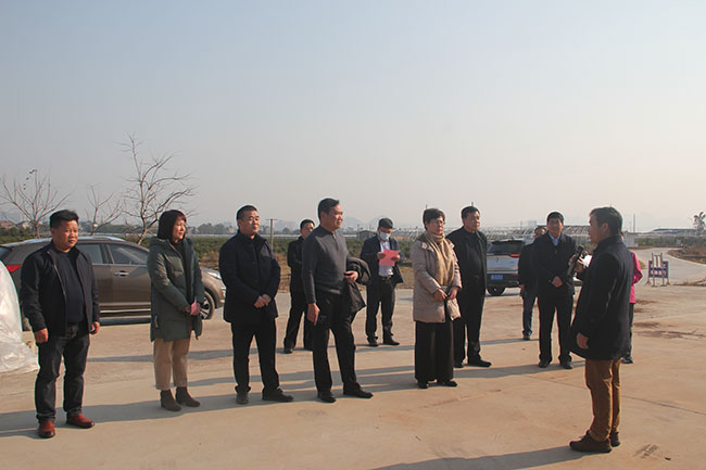 柳州市人大常委会副主任刘向群在融安县长安镇河勒万亩金桔扶贫产业示范园视察金桔园基础设施建设情况