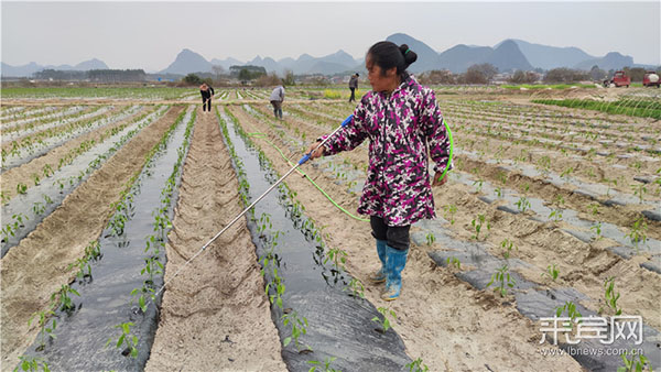 盖膜、插苗、培土、施肥、浇水……昨日,记者在兴宾区良江镇中团村看到,地里一片繁忙景象,该村的辣椒种植户正在抢春耕,忙着把辣椒苗移种到万亩辣椒生产基地。
