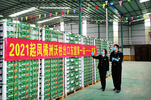 当下,武鸣沃柑喜迎丰收。邕州海关得知广西起凤橘洲生态农业有限公司有武鸣沃柑的出口需求后,第一时间与文莱大使馆、武鸣区政府部门通力协作,多次组建出口水果专家型团队对有出口意向果园及企业开展沃柑出口政策宣讲、技术指导培训,对标国际、国内质量安全要求,指导企业建立沃柑质量安全监管体系,从原料验收、生产关键控制点等环节提供精准帮扶;推行“一网通办”缩短办理备案时间,仅5个工作日就为企业办理好出境新鲜水果果园、出境水果包装厂“双注册”资质,帮助企业及时获得沃柑出口通行证,为武鸣沃柑首次拓展东南亚市场铺路搭桥。