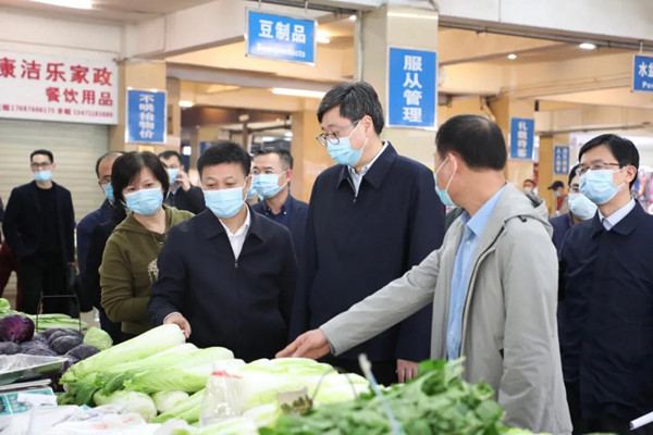 2月2日下午,自治区副主席刘宏武到麻村菜市和南城百货麻村店检查粮油、肉禽、蔬菜等主要生活必需品和年货商品的供应情况以及农贸市场、商场超市落实疫情防控措施情况。
