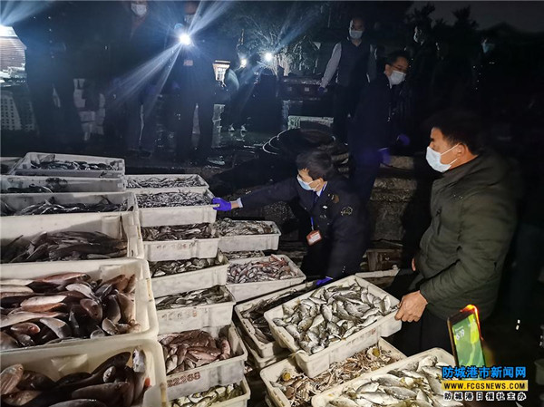 1月28日凌晨,在市市场监督管理局的统一部署下,港口区食品安全委员会办公室联合港口区市场监督管理局、港口区农业农村水利局、港口区检察院、市公安局企沙工业区分局等单位,在企沙渔政码头开展河豚鱼联合突击检查,对现场查获的3.18吨野生河豚鱼进行扣押及无害化销毁。