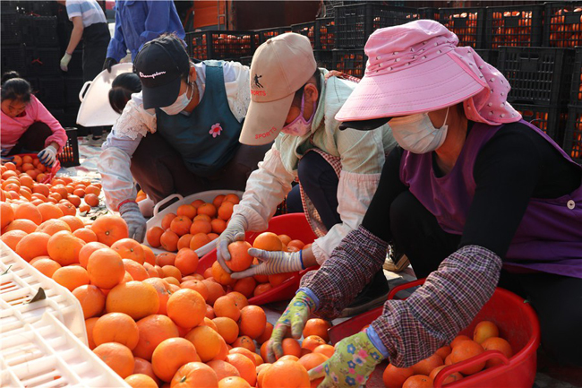 除了现摘现销以外,该厂分选车间内的40多名工人也都在分选线上忙着分拣、包装。企业负责人牛增福介绍,沃柑的成熟期一般是在12月到来年4月,因此2月依然是沃柑销售的好时机。“这个时候的沃柑口感较好,皮薄、果肉丰厚、汁水充盈,今年春节后由于沃柑订单增多,目前急需工人。”