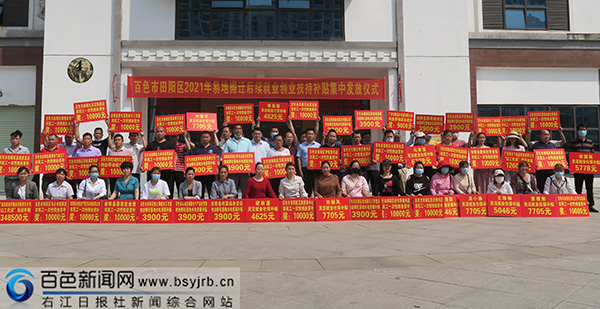 为持续推动各项就业创业扶持政策落地,稳定易地扶贫搬迁后续发展,推进脱贫攻坚成果与乡村振兴有效衔接,3月19日,田阳区在老乡家园举行2021年易地搬迁后续就业创业扶持补贴集中发放仪式,为易地扶贫搬迁创业者等重点群体兑现各类就业创业奖补,一次性集中兑现创业带动就业奖补等5类政策补贴,涉及67家企业、个体工商户和个人,发放金额共1049668元。