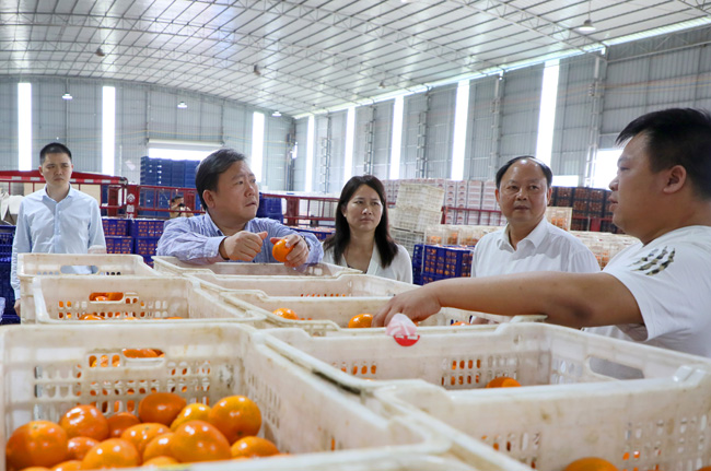 王凯学一行深入武鸣区沃柑分拣企业和合作社现场调研指导,了解当前武鸣沃柑质量安全情况,并与南宁市和武鸣区有关单位负责同志座谈,听取沃柑产业发展和监管工作情况汇报,交流工作中遇到的困难、问题和政策建议。