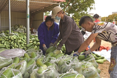 目前,毛节瓜在我市的销售价格为每公斤3.4元左右,为了争取卖个好价钱,部分瓜农自由组合,集中收瓜运到山东省销售。3月20日,铁山港区营盘镇彬畔村村民罗生一家牵头,和村里其他瓜农一起收毛节瓜3.3万公斤,集中打包以便装车发运。