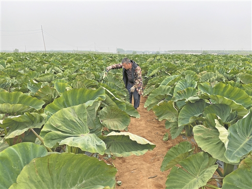 种植户正在芋头地里忙碌。