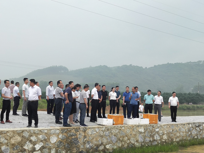 与会人员到寨沙镇月山屯参观了稻+螺种养基地,并赴拉沟乡关江村酸笋厂参观了竹笋加工基地、酸笋粗加工基地。
