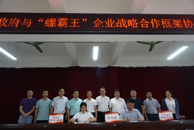 当天,拉沟乡政府与广西螺霸王食品有限公司签订战略合作框架暨关江村7000亩酸笋基地签约,达成长期合作的意向。鹿寨县主动出击,搭上柳州螺蛳粉产业发展的快车,依托鹿寨县得天独厚的资源优势,挖掘本地特色产业,重点发展竹笋和豆角等产业,引入龙头企业,螺蛳粉原料产业带逐步形成。