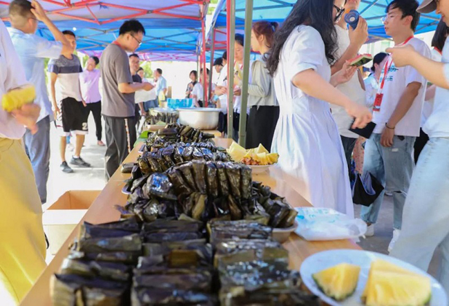 5月23日,上思县在妙镇佛子村举办香糯美食鉴赏会,防城港市到村任职选调生培训班90余名学员受邀参加鉴赏会。