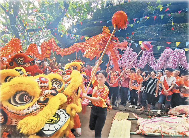 6月14日,南宁市邕宁区那楼镇那良村那蒙坡举办端午民俗文化活动。舞龙舞狮、采茶戏等传统表演,让群众从丰富多彩的活动中品味传统节日的味道。乔晓莹 潘妮 摄