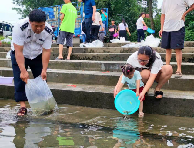 为修复水域生态环境,促进水体良性循环,6月16日上午,灵川县农业农村局组织开展主题为“保护渔业资源、养护漓江生态”的“我为群众办实事·渔业资源增殖放流”活动,在漓江江璟码头、甘棠江风雨桥北侧流域放流水生草鱼、鲤鱼等生物苗种。灵川县农业农村局、灵川县渔民代表等相关人员参加。