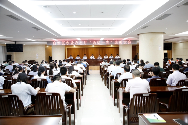 6月29日上午,自治区农业农村厅召开庆祝建党100周年暨“两优一先”表彰大会,表彰2019-2020年度农业农村厅优秀共产党员、优秀党务工作者和先进基层党组织,进一步激励全厅各级党组织和党员干部不忘初心、牢记使命,开拓奋进、砥砺前行,全面推进乡村振兴,加快农业农村现代化。自治区党委农办主任,自治区农业农村厅党组书记、厅长,自治区乡村振兴局局长李宏庆出席大会并讲话。