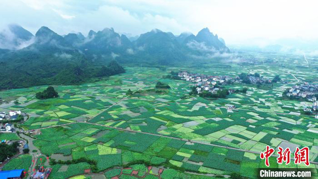 航拍柳州市柳江区百朋镇的万亩藕海。