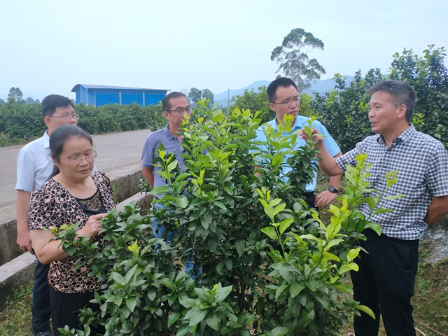 6月23-24日全国农技推广中心植检科王晓亮博士带领柑橘木虱调研组到桂林市荔浦市和永福县开展柑橘木虱调研工作。自治区植保站副站长滕冬建、桂林市植保站副站长袁辉陪同调研。