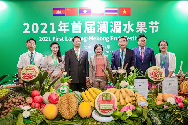 2021年7月5日,由农业农村部国际合作司主办、对外经济合作中心承办的首届澜湄水果节在京拉开帷幕。来自农业农村部、外交部、有关省区农业部门,中国果品流通协会、中国村社发展促进会等社会组织,浙江、陕西、内蒙古、北京、天津、河北、山东、海南等地的企业和村社,以及柬埔寨、老挝、缅甸、泰国、越南驻华大使馆、联合国粮食及农业组织驻华代表处的代表约100余人参加了水果节启动仪式。