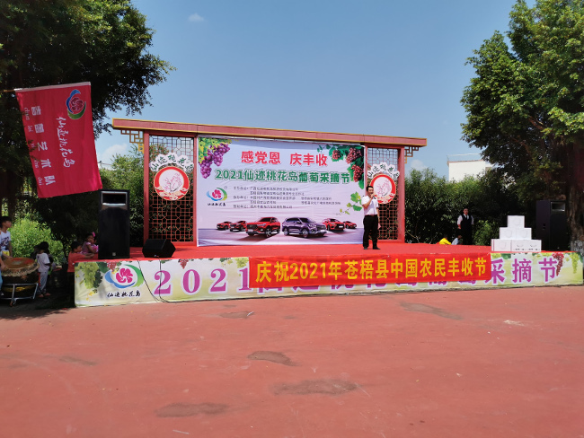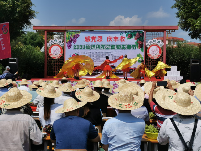 近日,苍梧县在梨埠镇沙地村隆重举办“感党恩.庆丰收”仙迹桃花岛葡萄采摘节,以实际行动庆祝中国共产党成立一百周年和2021年中国农民丰收节。