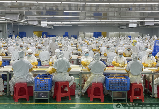百色市积极推进芒果全产业链建设,加快推动芒果产业转型升级。图为当地的芒果加工厂。