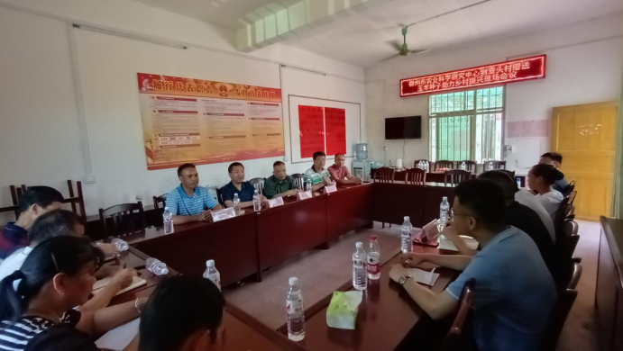 在潭头乡潭头村的座谈会上,柳州分院领导们给乡政府领导、村委干部、种植大户宣传柳州分院的职能与优势:“我们来到这里,就是希望能在脱贫攻坚战与乡村振兴事业工作无缝对接上做出贡献,柳州分院不仅仅有玉米种植方面的技术,还有水果、蔬菜、甘蔗、桑蚕、食用菌等多种农作物研究。”周颀院长在座谈会上说道。“村里想做什么,愿做什么,我们就配合协助什么,我们希望农业科技成果能在潭头村开枝散叶、开花结果”。