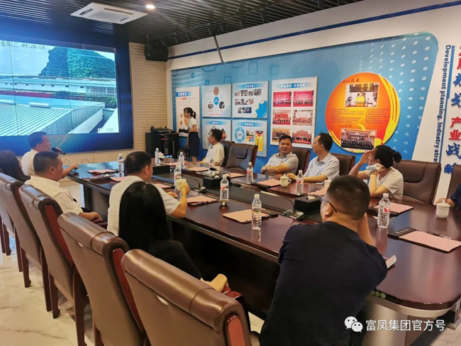 ▲王群副市长一行在富凤产业展厅举行调研座谈会