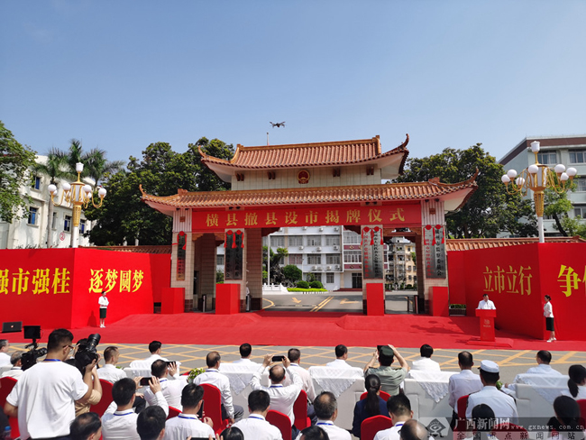7月29日上午,横县撤县设市揭牌仪式在横州市委、市政府大院隆重举行,横州市委、市人大常委会、市人民政府、市政协、市国防动员委员会、市纪委监委相继揭牌。