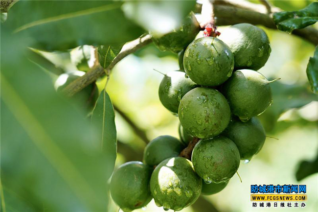 上思县怡诚农业科技开发有限公司通过土地流转,从2014年开始种植澳洲坚果,目前已标准化种植5300亩,约有9万棵坚果树。该公司工作人员告诉记者,当前是坚果的生长期,预计9月中旬能收获6万公斤坚果。采收的果实先进行脱皮初加工,然后运往东兴市怡诚食品开发有限公司,经精加工后即可销售。