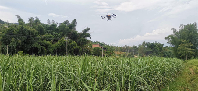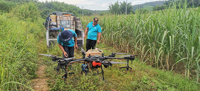 随后,该区农机中心应邀病虫害测报站、经作站等相关农技专家实地查看,确认此次甘蔗大片面积病害为甘蔗叶焦病。为及时控制病害,减少村集体经济损失,农技专家指导村委选用50%氯溴异氰尿酸(消菌灵)可溶性粉剂1000-1200倍液、50%多菌灵可湿性粉剂500-600倍液、75%百菌清可湿性粉剂600倍液等农药进行喷雾防治。当天下午,区农机中心联系的当地飞防公司派人派机到场进行飞防作业。