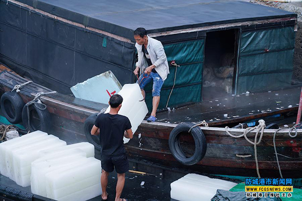 工人师傅正在装冰。