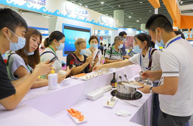 广西展区推出免费品尝环节,吸引众多市民前来品尝并购买。广西南宁璞嘉贸易有限公司、北海市佳德信海产品有限公司、广西女汉子名优土特产营销有限责任公司、广西北海丽莹珠宝、广西全州县农业产业化联合体、全州县盛田稻谷种植专业合作社、桂林全州县福华食品有限公司等参展企业,重点展示禾花鱼、中华草龟,南美熟虾、南美虾仁、马面鱼、墨鱼仔、带鱼、虾滑、鱼滑等水产品品牌,吸引了肇庆、广州等商家前来洽谈。