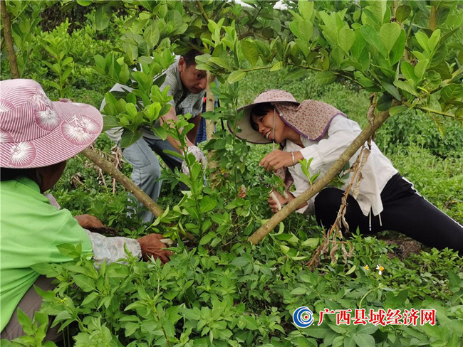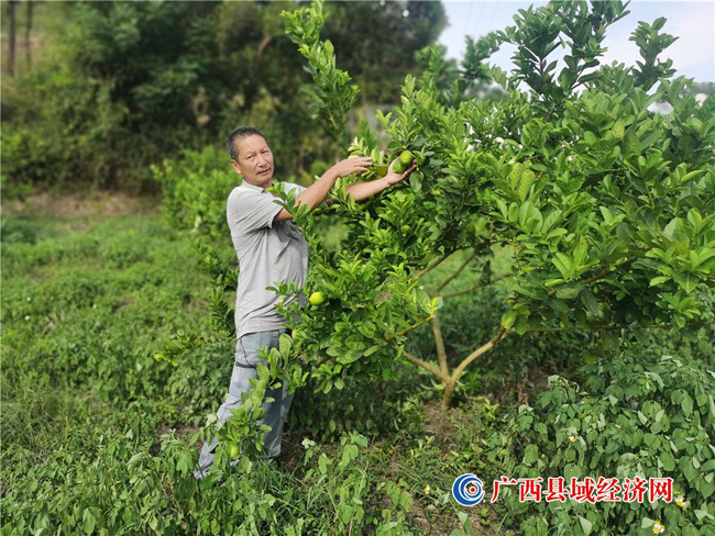 峙浪乡思陵村柠檬种植示范基地负责人在查看柠檬果树的长势。