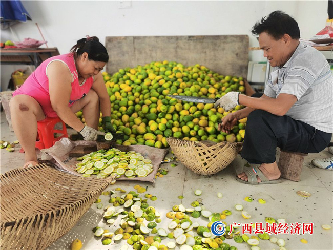 峙浪乡思陵村柠檬种植示范基地,村民在给柠檬果进行切片。
