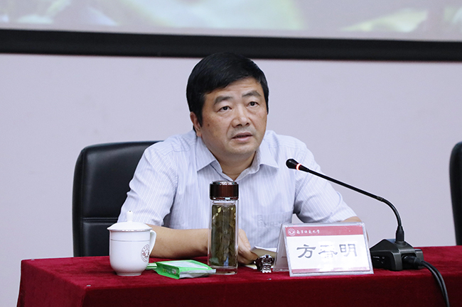 9月26日,自治区副主席方春明到南宁师范大学为第十期广西农业经理人培训班学员授课,南宁师范大学党委副书记、校长李传起主持培训会。