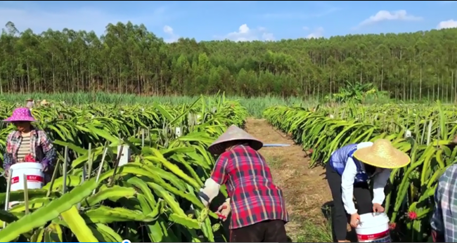 近日,南宁市江南区苏圩镇镇宁村、保卫村、慕村、仁德村等地火龙果基地火龙果丰收,村民们正忙着采摘、分拣火龙果,供应市场。果园里一片繁忙的景象,每个人脸上溢满了丰收的喜悦。