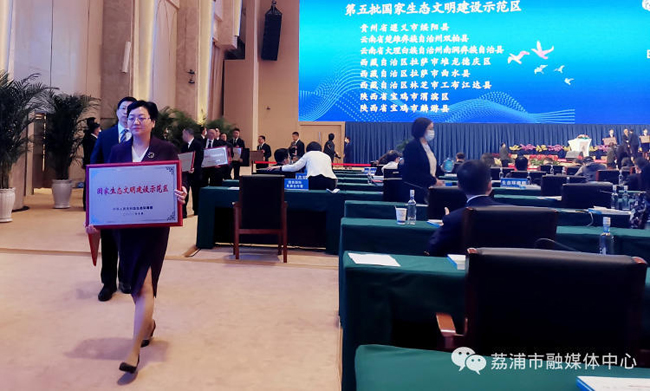 近日广西荔浦市在《生物多样性公约》缔约方大会第15次会议(COP15)的生态文明论坛上,被授予“国家生态文明建设示范区”。荔浦市委书记李玉清在昆明主会场领取牌匾接受表彰。这一刻,见证了荔浦市的努力,也见证了属于每个荔浦市民的荣光。