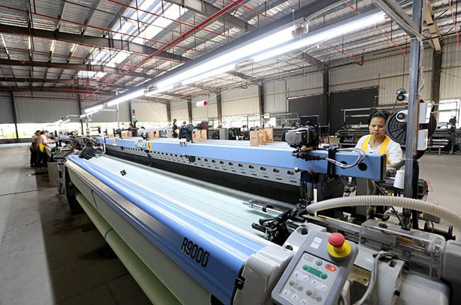 厂房内,丝绸厂的机器已陆续入场进行试产。
