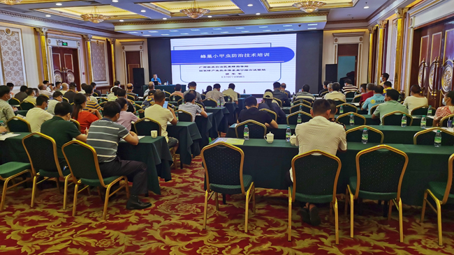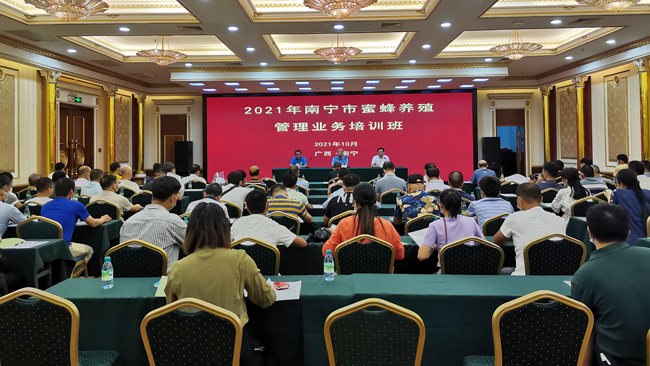 蜜蜂养殖行业通常被人们称为“甜蜜事业”。近日,为了进一步加强我市的蜜蜂养殖监管,有效提升养蜂从业人员防控蜂巢小甲虫的危害,促进蜜蜂产业健康发展,在南宁市举办了一期蜜蜂养殖管理业务培训班。南宁市水产畜牧兽医技术推广站李凌波站长出席了开班仪式,并就当前蜂巢小甲虫的危害性进行了分析,对我市蜂巢小甲虫防控工作提出明确要求。
