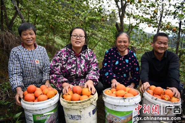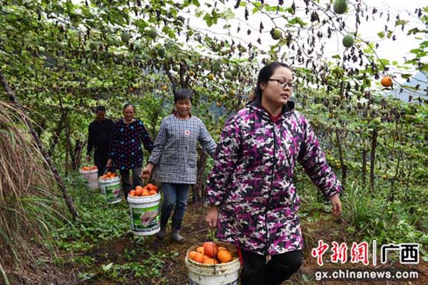 在广西桂林市龙胜各族自治县三门镇大滩村,村民在搬运刚采收的吊瓜。