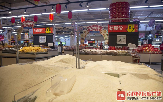 ▲据商店人员介绍,近期并未出现市民大量购买大米的现象。